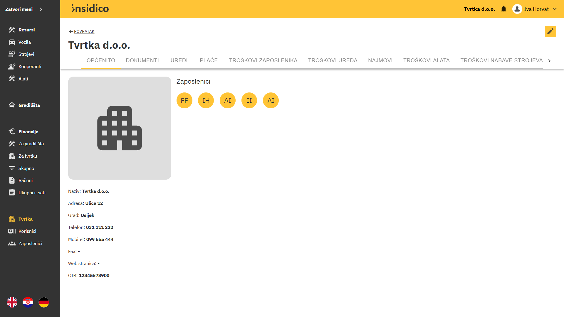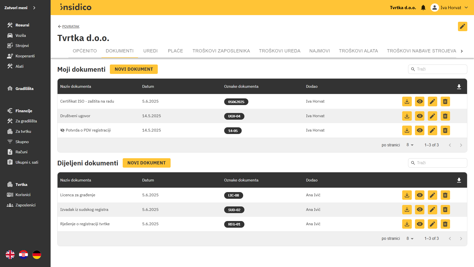Za tvrtku se vodi evidencija osnovnih podataka i pripadajuće dokumentacije. U digitalnu arhivu moguće je pohraniti ugovore, račune, platne liste, dokumente o nabavi i druge interne zapise. Svi dokumenti dostupni su u nekoliko klikova, što smanjuje administraciju i rizik od gubitka, a osigurava brzi pristup ključnim informacijama.