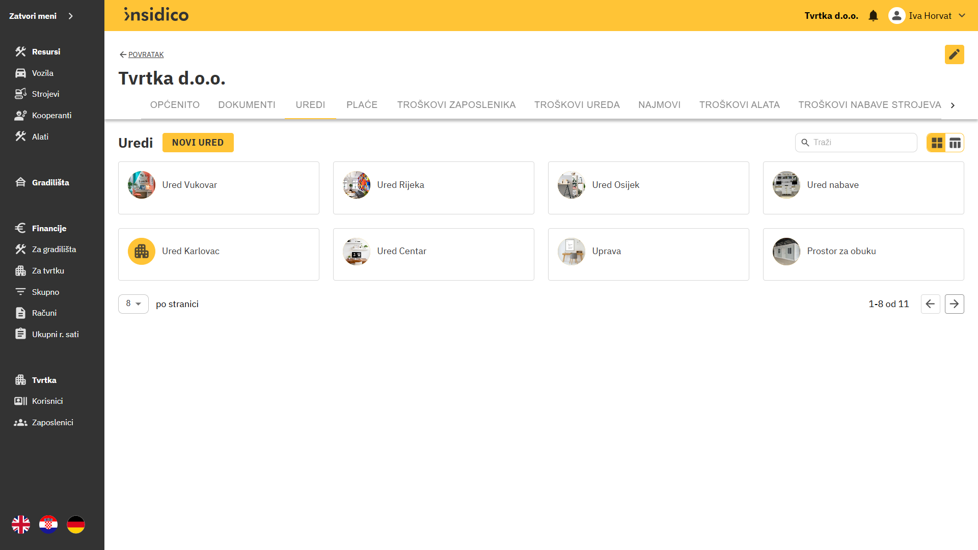 U ovom dijelu moguće je samostalno kreirati ured kao stvarnu ili fiktivnu lokaciju i uz nju vezati sve troškove administracije i poslovanja. Evidentiraju se izdatci poput najma prostora, režija, uredskog materijala, IT opreme, komunikacijskih troškova i ostalih rashoda. Ovakva organizacija troškova omogućuje preciznu analizu po lokacijama, bolju kontrolu i optimizaciju rashoda koji čine osnovu poslovanja građevinske tvrtke.